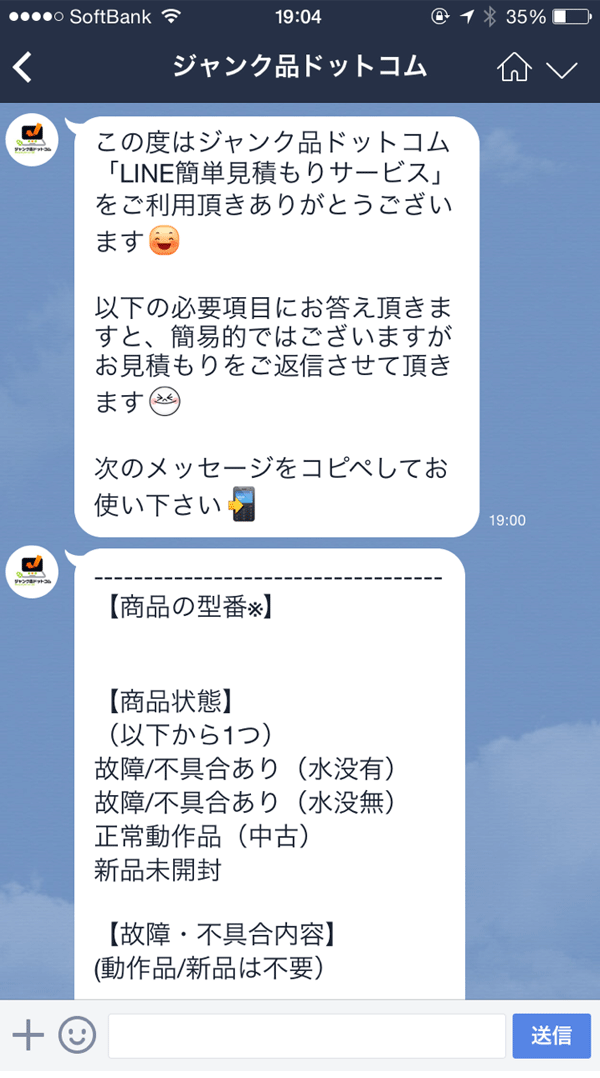 3.テンプレートにそって買取価格が知りたい商品をご記入し、送信下さい。