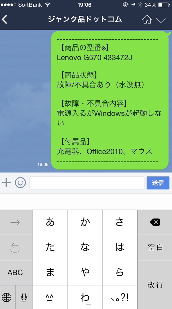 記入項目は、商品名(型番)、状態、故障(不具合)内容、付属品のみです。